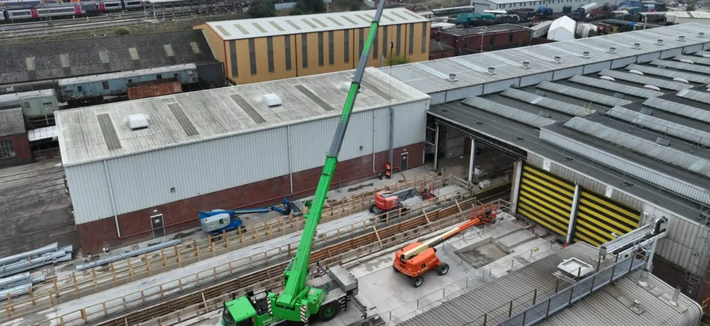 The first phase involved the removal of a substantial section of rail track to enable a 30-meter extension to the Underframe Cleaning building, allowing for expanded cleaning operations on rolling stock.