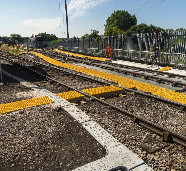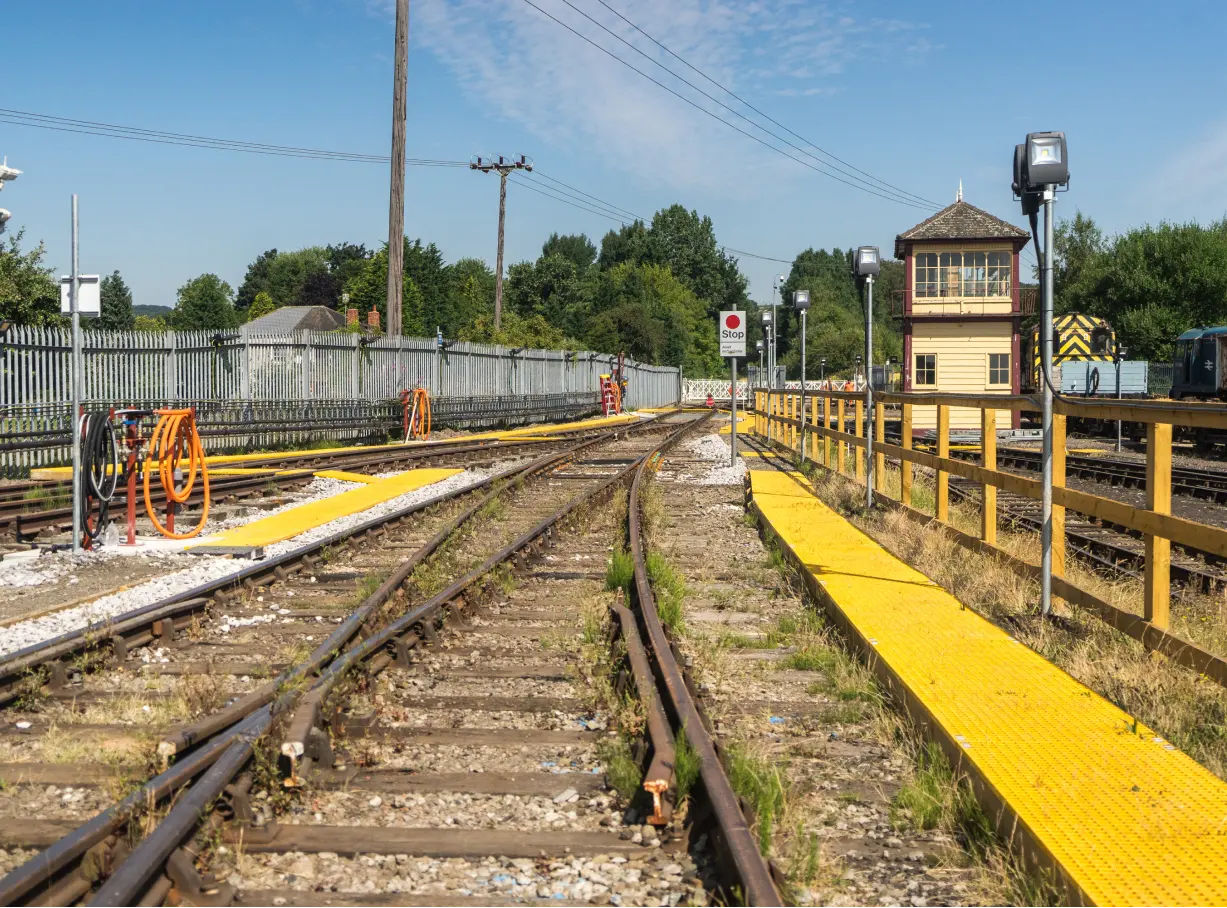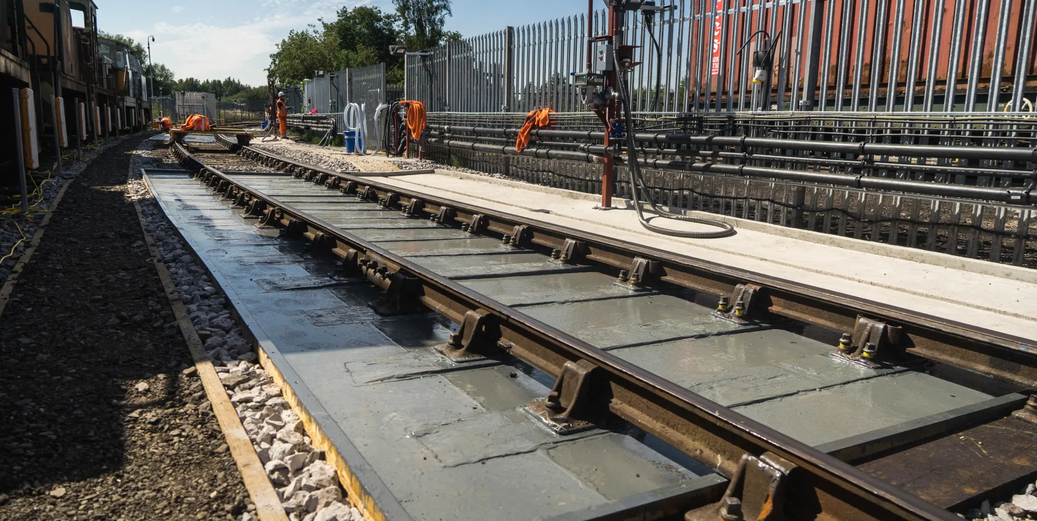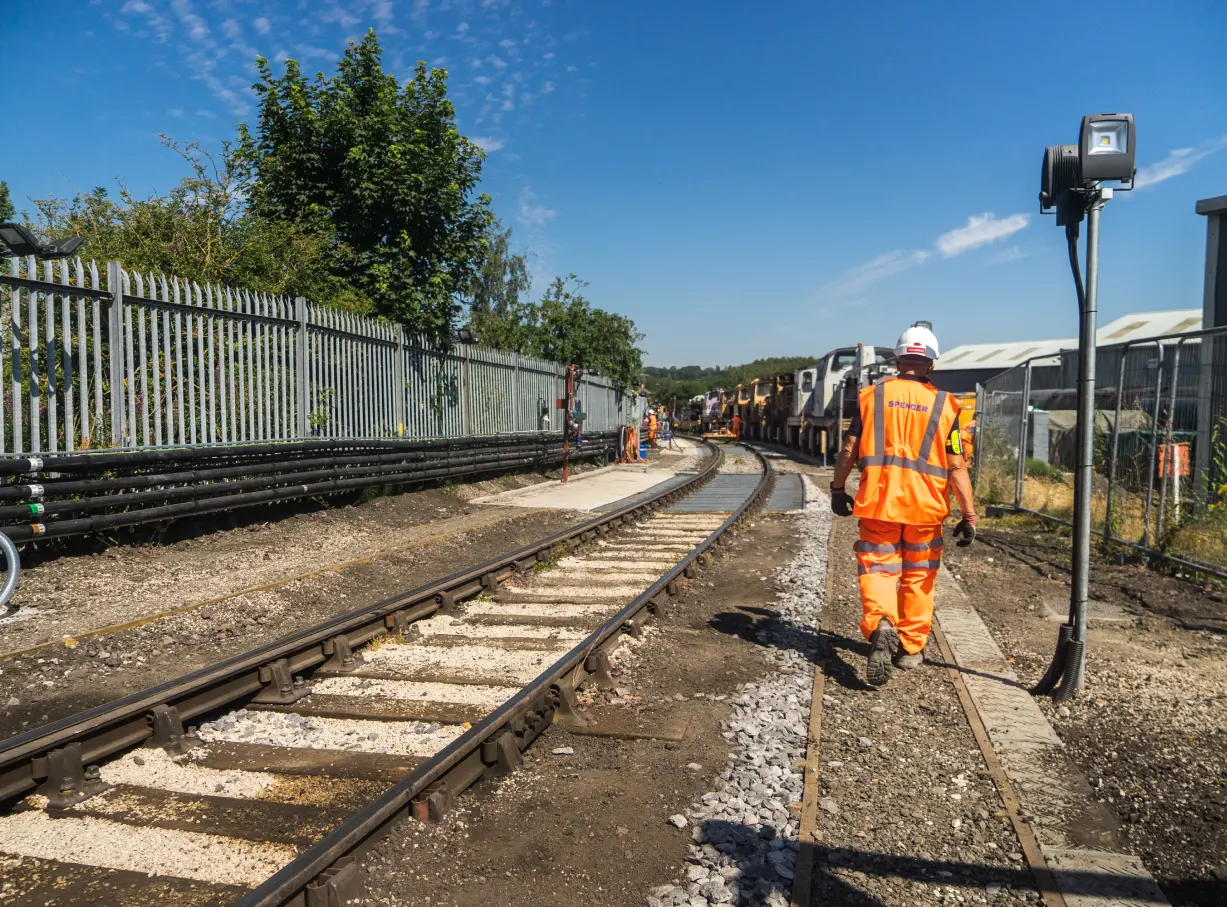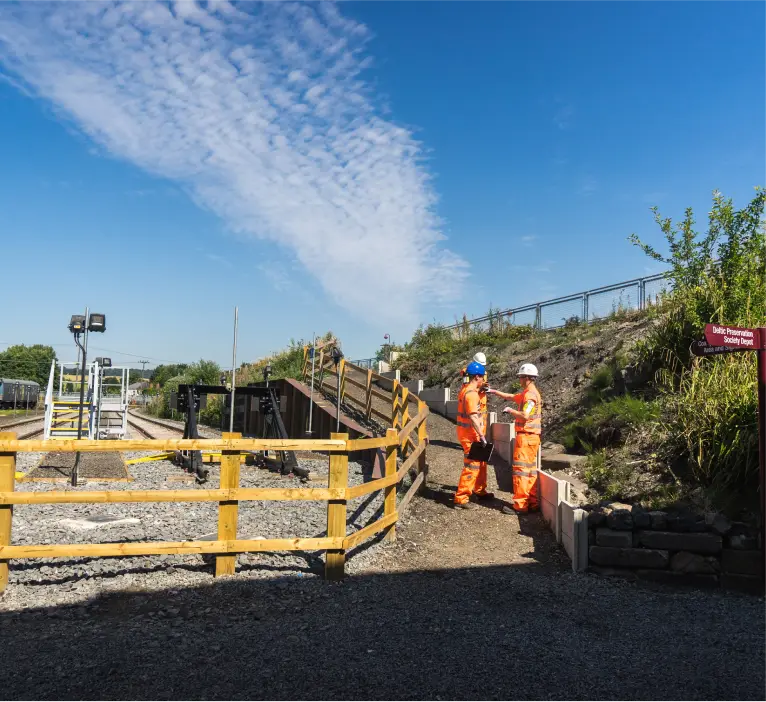 The works included alterations to the permanent way (P-Way) track. Construction of timber-edged walkways and glass-reinforced plastic walkways including track crossings for authorised access routes. Palisade fencing, light and power supplies, train stop boards, water, fuel and drainage points and a trackpan system for emptying or fuelling were installed across the depot.