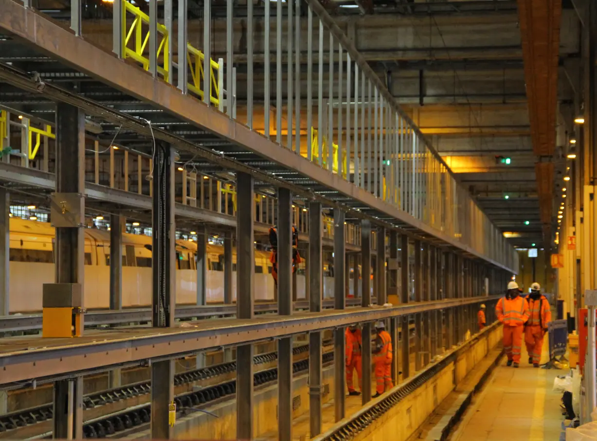 The works included the removal of part of a redundant platform to create space for a plant room as part of a new CET (controlled emission toilets) system, the construction of a new track slab and sleepers, as well as overhead line equipment upgrades.