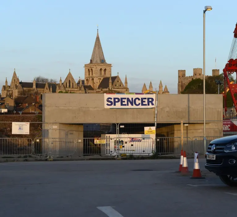 This project was part of a £150m BS11000 collaborative alliance between Spencer Rail Engineering, Atkins, Balfour Beatty and Network Rail. Spencer Rail Engineering were awarded the contract to undertake all civils works on this track remodelling project. This included the creation of a new station, subway and multi-storey car park at Rochester, new 12 car platforms at Strood and a new 12 car bay platform at Rainham, embankment widening including new contiguous piled retaining walls at Rochester and embankment and track monitoring. We also established a new project village for the project team, where we co-located with our collaborative partners for the duration of the project delivery.