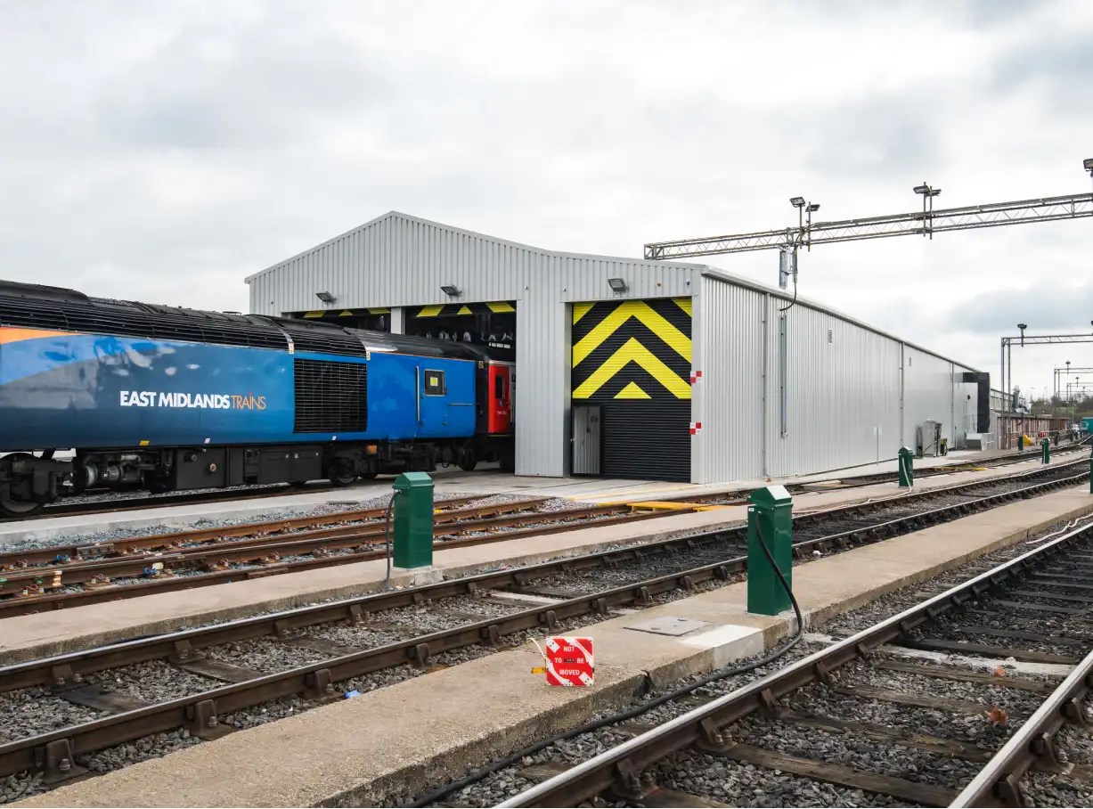 Spencer Rail Engineering were appointed by East Midlands Trains to deliver the design and construction of a new carriage wash facility as an extension to the existing maintenance facility. The works included all associated surveys required for full design, clearance on existing P-Way, lighting gantries, and two offices, followed by the installation of the new shed, carriage wash and associated P-way.