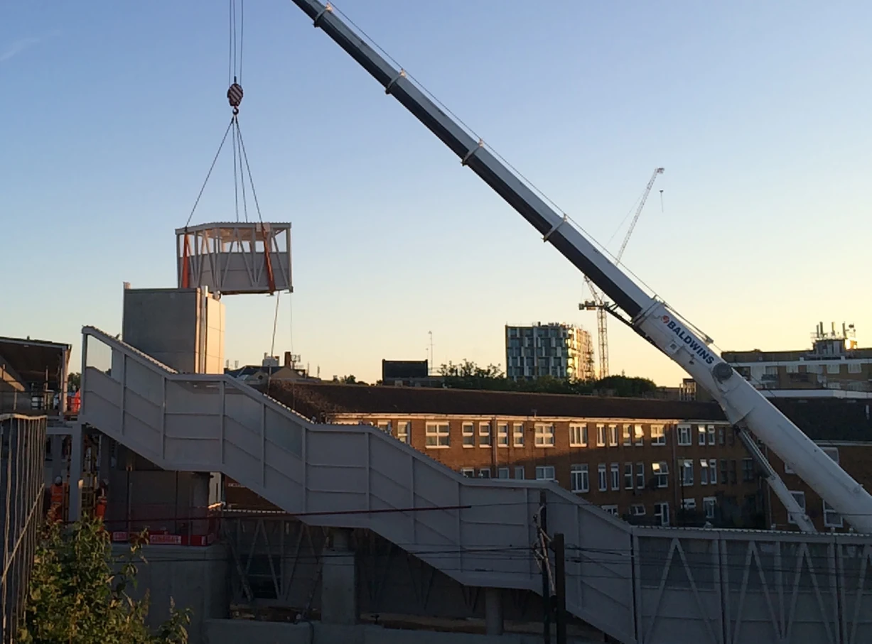The walkway designed and built by Spencer Group was a multi-span elevated 150m steel walkway, with supporting columns on piled bases. To facilitate this, temporary works for the installations of truss spliced sections were required. Additionally, Spencer Group fitted a new lift, power supply and associated mechanical services, alongside lighting and SISS installation (including CCTV, comms, PA etc.). Electrical earthing and bonding was carried out by Spencer Group in addition to adjustments to the existing OLE return conductor. We also landscaped and rejuvenated the local realm, involving the relocation and installation of a brand new children’s play park and the installation of new stairs. with ‘fit out’ of M&E, PA and passenger information displays.