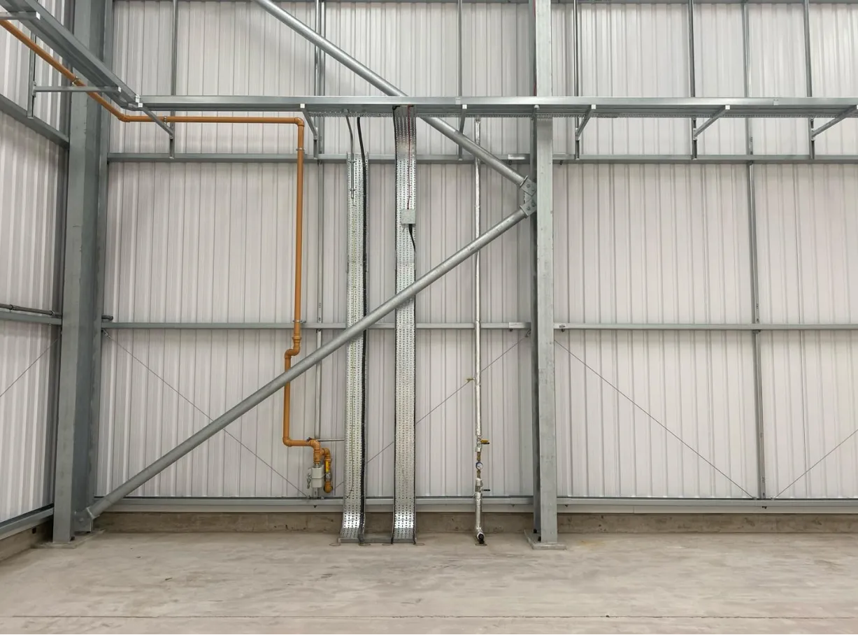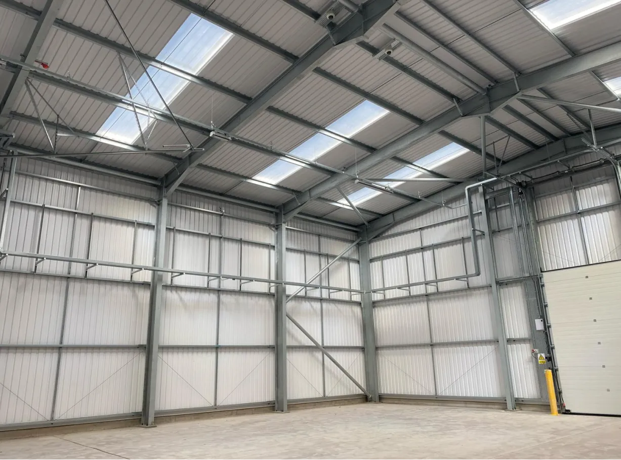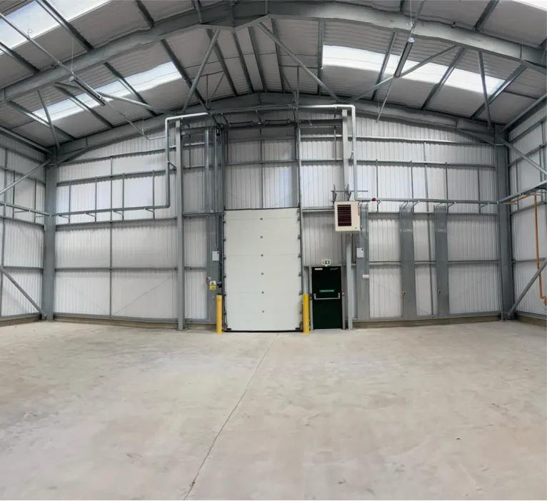 A new concrete raft foundation was constructed to house the new portal frame structure, maximising the available space whilst also being capable of supporting the heaviest fork lift on site (24 tonnes).