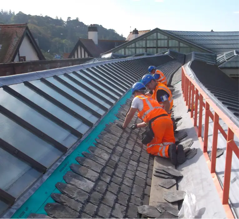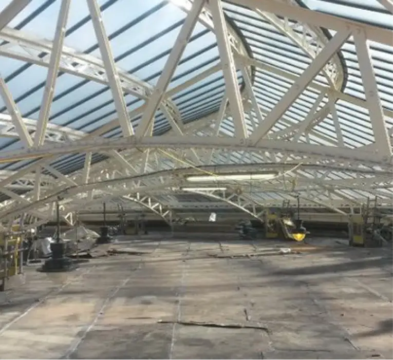 Spencer installed a scaffold crash deck below the canopy while we worked to enable the platforms to remain open throughout the works, and installed a weather protection cover over the canopy, alongside OLE screening. We then removed the roof covering and blasted or hand prepared the steelwork as necessary (depending on condition of steel and paint). Any lead paint was removed in a fully encapsulated enclosure to prevent exposure to the local ecological habitat. We replaced sections of rotten timber before renewing the roof slate, sourced from just 60 miles away to ensure a good match, which was placed on new battens. We then refurbished the gutters and downpipes, renewed the leadwork and installed new roof access hatches to improve future maintenance to an aesthetically pleasing design (approved under listed building consent).